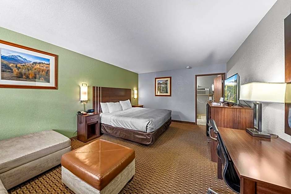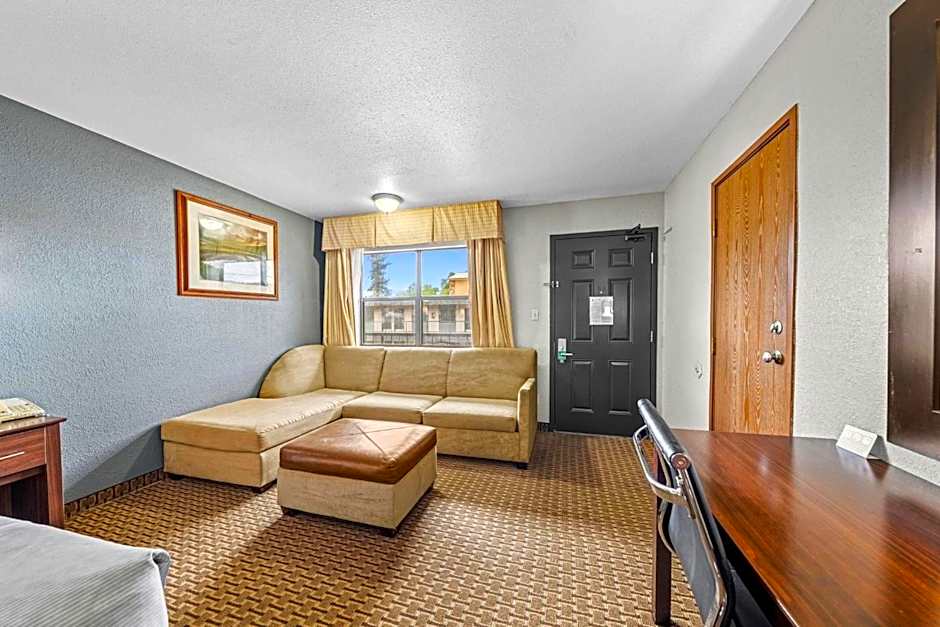 This room features a flat-screen TV, a microwave and a small refrigerator. An private bathroom with a hairdryer is also included.